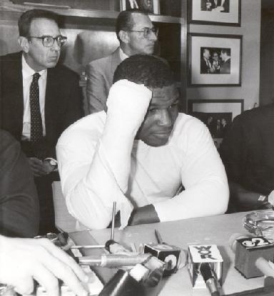 That injury would force the postponement of his bout with Frank Bruno, and the late-night Harlem showdown would gain infamous tabloid status in the career of Tyson's violent encounters outside the ring.