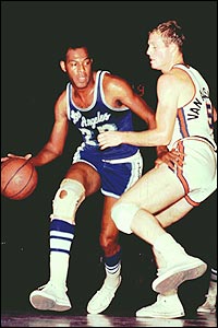 Four of the NBA's 50 greatest players made their professional debuts on October 22nd in history. Starting with the most recent - Robert Parish with the Warriors in 1976, Lenny Wilkens with the St. Louis Hawks in 1960 (I looked long and hard for a picture of Lenny in a Hawks jersey - if you have one, please send it along), Elgin Baylor with the Lakers in 1958, and Sam Jones with the Celtics in 1957. Give that squad a power forward and oh shit you'd have a starting five.