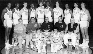 Most people associate that streak with Bill Walton, and yet the 1970-71 team that started the streak had no big red Deadhead at center. This was the team that presided during the two years between the Walton and Alcindor eras. Forward Sidney Wicks (pictured right) was its star - the other four starters were Steve Patterson at center, Curtis Rowe at forward, and Henry Bibby and Terry Schofield at guards. This was the nucleus of a team that won two national championships, in 1970 and 1971.Of course, come the '71-'72 campaign, there was a new group of sheriffs in town, a more familiar gang in UCLA history - Walton, Nater, Wilkes. Whereas the team before was exemplary in both skill and discipline, this team was frightening in its abundance of size and talent. Their closest game in their undefeated '71-'72 season was a six-point win over Oregon - their next closest was a fourteen-point win over Cal. In general, if they beat you by 20, you'd had yourself a good night out there.