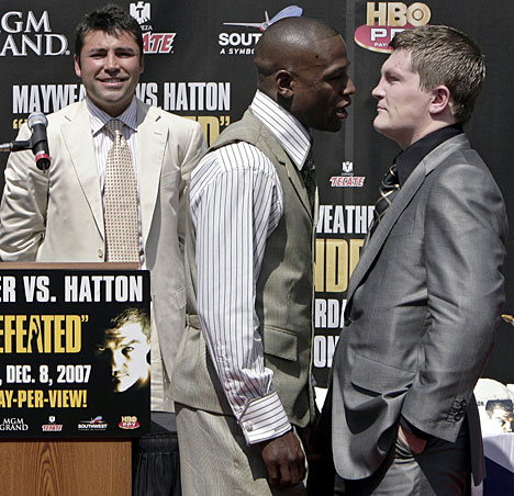 Based on what I saw last night, Mayweather/Hatton is going to fall quite a bit short of that mark, which is perhaps not so much the fault of the show as the fault of the principals. Floyd is great television, but in small doses. In the De La Hoya series, he was electrifying, and yet it was for most of us a first journey into his strange universe of sociopathic would-be father figures and second childhood fueled by attention deficit disorder and conspicuous bricks of cheddar in every outstretched hand. Revisiting his tiny monarchy of mo' money, even sitting one on one with the King himself in an intimate fireside chat, one can't help but divine the bleeding obvious of Pretty Boy Floyd Mayweather - there's no there there.