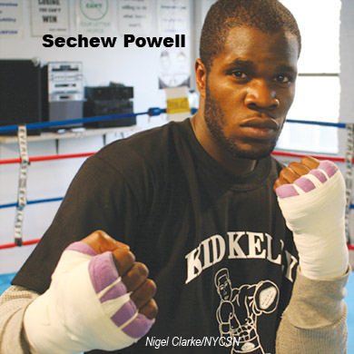 Don’t get confused about tomorrow night’s fights – the big names are the headliners, but the real bout is the undercard. Kassim Ouma and Sechew Powell at 154 is the kind of affair a true fight fan loves – an undefeated up-and-comer against a former titlist with plenty of whupass left in the tank. Powell is 20-0 with 12 knockouts, a Brownsville boxer who is anything but a Brownsville brawler. He’s a southpaw tactician who handles himself with poise in the ring.