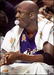 That same night, another overblown international figure was making a grandiose and otherwise useless appearance in the Big Apple. Michael Jordan kicked off his second unretirement, opening his career with the Wizards in a game against the Knicks at the Garden. There was no double nickel. There was no miracle last-second dish to Bill Wennington for the win. MJ scored 19 on 7 for 21 shooting from the field as the Wizards lost 93-91. He looked old and slow and committed two key turnovers in the final minutes before missing a buzzer-beater three for the win. His farcical third act was under way. In other words, the terrorists had already won.