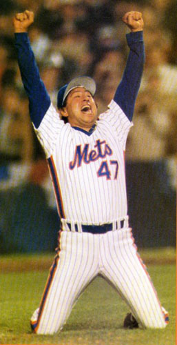 Then the Mets put up another threespot in the seventh off the real goat of the series, game 6 and 7 loser (and former Met) Calvin Schiraldi. And that was that, although the Sox made it interesting in the top of the 8th with two runs off Roger McDowell before Davey Johnson brought in Orosco (who was probably only like 38 years old in 1986) to shut down the side. Orosco did the job, and made it easy on the New York's collective ticker the next inning, pitching a 1-2-3 ninth.No Mas presents a 20th anniversary tribute to Game 7 tonight at Classic Kicks, 298 Elizabeth Street (see the CI invite below). Lots of original Mets-inspired art and Reverend Vince and ’86 Series trivia and Brookyln beer and I-berg perpetrating his general retro mayhem. Yours truly will be in attendance. I’ll be the one looking glum in the corner, trying to get someone to talk to me about Bake McBride.