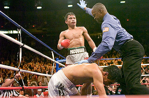 Manny Pacquaio - Last but not least. It's gonna be very tough to argue against Pac Man in '06. He fought the last two thirds of an epic trilogy with Erik Morales, both of them knockouts, with a dominant performance against the very competent Oscar Larious sandwiched in the middle. Manny Pacquiao is quite possibly the biggest fighter in the world right now, and he's achieved that kind of star wattage at 130 pounds. When a little guy has that kind of stature, you know he's something special. A Barrera/Pacquiao rematch is a possibility in '07, and for the true fight fan, that is every bit as exciting a bout as Floyd/Oscar. All of these factors make the case airtight for Pac Man as the 2006 FOY.