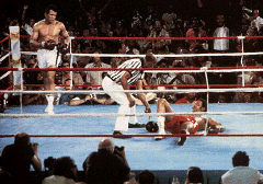 As good a fight as the Thrilla, and with both of them still in their primes. As I said on the anniversary of this fight a few weeks ago, maybe Johnson/Jeffries was bigger, maybe Louis/Schmeling... and I should probably throw Dempsey/Tunney on that list too. But this was undoubtedly the biggest fight of my lifetime, almost an allegory of civil war as much as it was a heavyweight title bout. It's hard for me to imagine such portent, such skill, such fury ever being matched again.