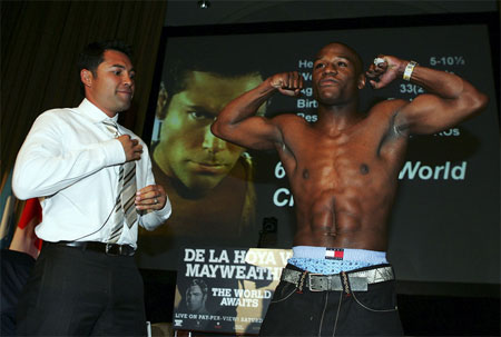 Obviously, the sport has it's problems - but De La Hoya-Mayweather is not one of them. Floyd may be a shithead - but this guy just wrote a book about Barry Bonds. He also references T.O. (another model citizen and candidate for man of the year) - I guess to compliment him on his creativity in trash talking, as opposed to Floyd's?
