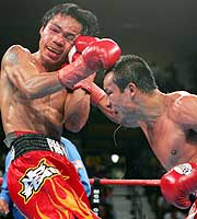 It's a little unfair to Barrera that they're priming us for Saturday with his disappointing performance against Juarez and then showing Marquez/Pacquiao, which is undoubtedly the shining moment of Marquez's career. JMM gets knocked down three times, and very near to knocked out, in the first round, and then comes back from a 10-6 start to earn a draw. If you've never seen this fight, don't miss it - it's everything that's great about boxing, brutality and fear and guts and a chess match all rolled into one. (HBO2 runs these two fights again on Saturday morning at 11 a.m.)
