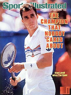 That’s right - the man with the fish face, argyle shirts, monstrous Adidas racquet, groundbreaking forehand, and mile-wide mean streak is hip. I wonder sometimes where these fans were when he was playing. This is the guy whom “Sports Illustrated” called the “The Champion Nobody Cares About” right on its cover (now that’s when tennis was huge! you can’t even get Roger Federer on the SI cover at all these days). He was seen as a sallow, workaholic drone, a perfect Eastern bloc foil for the ultra-talented and semi-lazy American John McEnroe.