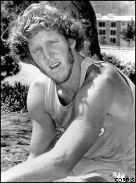 As an organizing principle, the whole 60's thing wouldn't be so bad, except that it limits the show to some really banal observations. Because the legitimate connections between the 60's counterculture and UCLA basketball are meager - Alcindor participated in the boycott of the '68 Olympics, the 1970 championship team sent an anti-war letter to Nixon, Bill Walton went to protests and wore his hair long - we're left with a show that goes back and forth between two narratives and doesn't really do either of them justice. We get a cursory treatment of the Wooden era and an even more cursory treatment of the upheaval of the 60's, with every now and then someone like Ray Manzarek appearing on the screen to say, apropos of nothing, "In your FACE! break on through TO THE OTHER SIDE BABY! I'm a back door man!" or Penelope Spheeris bragging about how when she was at UCLA they smoked pot out in the open man and they like totally dared anyone to try and stop them.Oh it's all so wack. They should have just stuck to the basketball. When they do, believe me, it makes a lot more sense. Sidney Wicks is funny and looks about the same as he did in his playing days only now he's bald. And towards the end there's a lot of good Wooden stuff, about his equivalent of swearing ("'Goodness gracious sakes alive' just sent chills down your spine... if he said that you knew it was serious...") and the fact that he started every season's training camp the same way - by teaching his players how to put their socks on properly. This is the kind of detail that I could have done with a lot more of. Meanwhile, I could have done with a LOT less of Ray Manzarek and Bill Walton. Those two should have a ladder match someday soon for the Intercontinental Most Self-Important "I Am the True 60's Wild Man" Blowhard Belt. Walton is just... well check it out. You'll see.