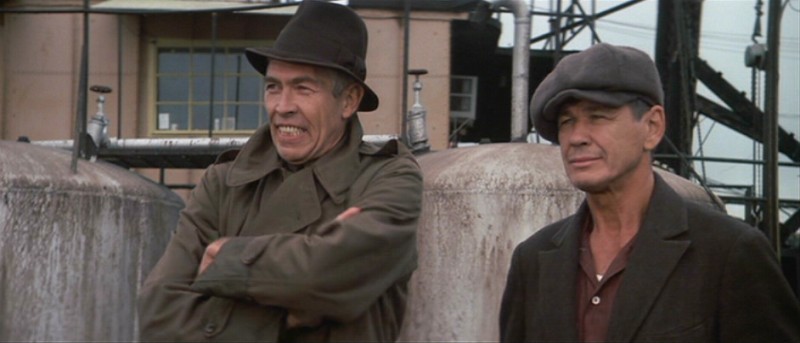 The basics: Charles Bronson (in a rare non-gunslinger role) plays Chaney, a drifter who resorts to fighting to make money. His promoter is Speed (a spectacular James Coburn), a low-grade hustler with a mouth too big for his wallet, and his cutman is Poe (Strother Martin), a medical school dropout with a dope habit and a very lyrical manner of self-expression ("I assume you realize that the blood of the fabled Edgar Allan courses through my veins"). The three of them look to make a big score by taking on the city's reigning street fighting champ, Jim Henry (Robert Tessier), who's promoted by a local power broker named Chick Gandil (Michael McGuire).