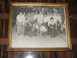 Carl Furillo (about to pitch the ball), Joe-Joe the Midget (L of Furillo), and the rest of the fellas playing Bocce Balls in Bamonte’s yard, circa 1941. “They would play for 10 Cents beers. Whoever lost would pay the round.” -Anthony Bamonte