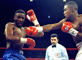 So without a big bout to plug, I thought rather than look forward to the Floyd/Hatton fight (we'll be doing plenty of that next week), I would look back to tell the story of a little-known ring classic. The fight I have chosen for our No Mas Knockout of the Week goes all the way back to 1994, when the Hitman Tommy Hearns took on none other than Martin "Raw Dog" Lawrence.