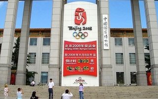 "... are celebrating the construction of the ultimate 'water follies' which will be ready in time for the Olympic year. These include the vast lake that will surround the titanium, egg-shaped National Grand Theater next to the Great Hall of the People, just off Tiananmen Square, as well as the largest fountain in the world at the Shunyi 'Water Heaven.' The Shunyi water park has been built on the dried-out remains of the Chaobai River - no irony intended..."